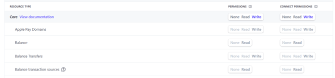 You will now need to update the permissions for the restricted key from your Stripe Account.