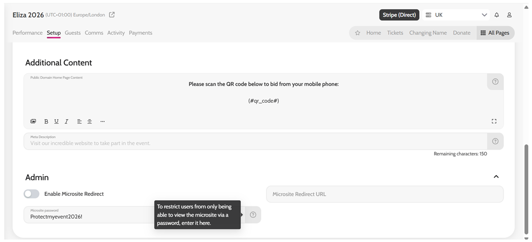 Creating a password for your Event