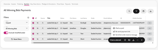 Re-sending Payment Links for Auction Items